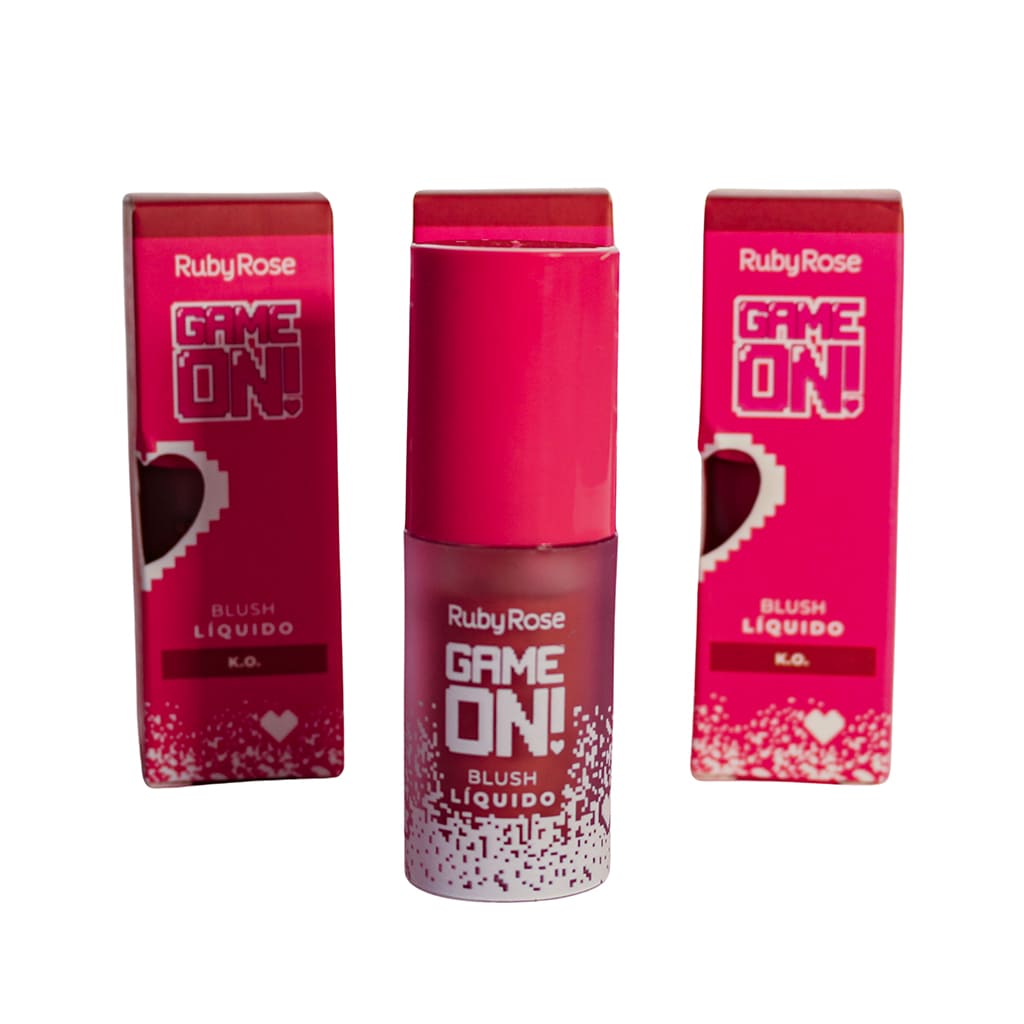 Blush líquido. Ruby Rose Game On! possui alta pigmentação e ótima fixação, dando cor ao rosto e deixando um aspecto natural e saudável.