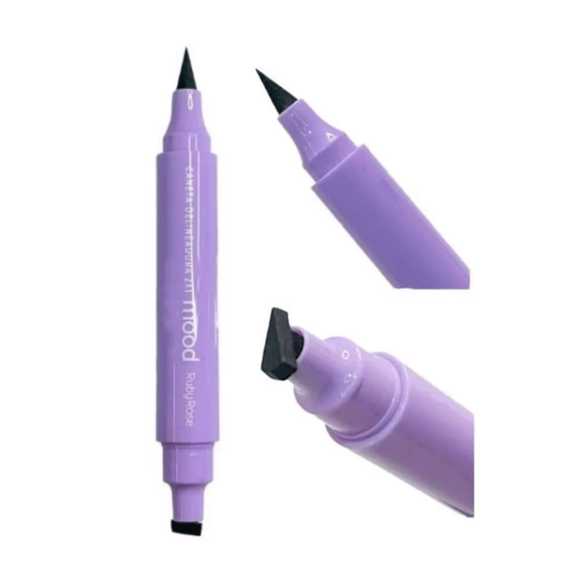 Caneta Delineadora 2×1 MOOD é a solução perfeita para quem ama um olhar impactante e precisa de praticidade! ?? Com uma ponta para o delineado de gatinho e outra para preencher e finalizar a make, você vai arrasar sem esforço. É só segurar a ponta do delineado e completar o restante dos olhos com a outra – simples assim Resistente à água – Para um delineado que dura o dia todo, sem borrões.