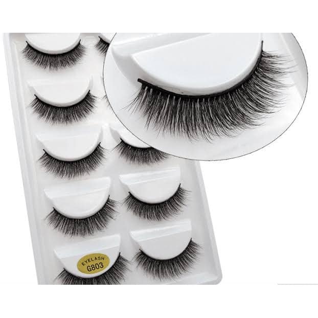 Caixa contendo 5 pares de cílios premium com cerdas semi-mink,(falso) 3D. Modelo G803.