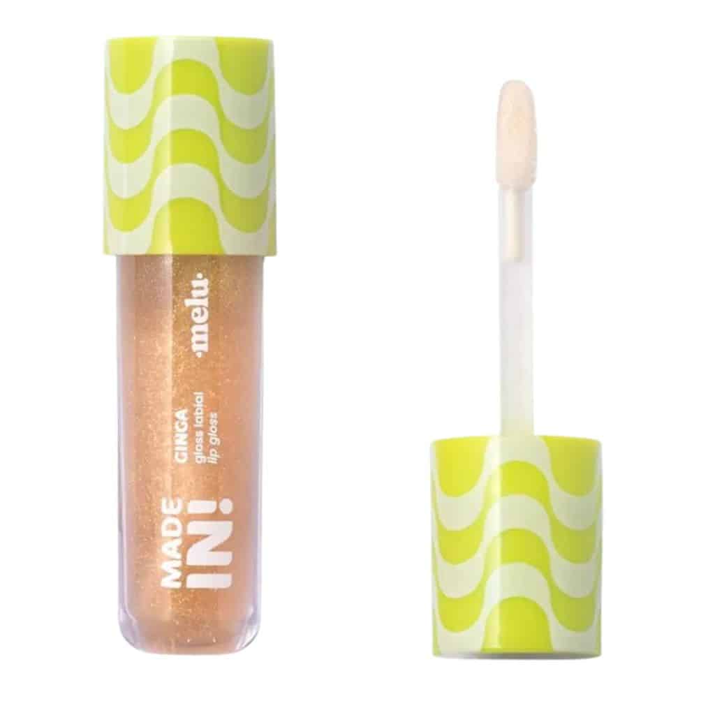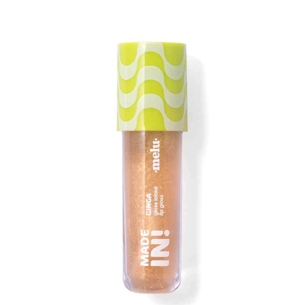 Na cor “Molêjo”, o gloss apresenta um tom dourado translúcido com partículas de brilho, ideal para iluminar sutilemente os lábios com charme e personalidade, transmitindo uma vibe praiana e ensolarada típica da linha Made In!