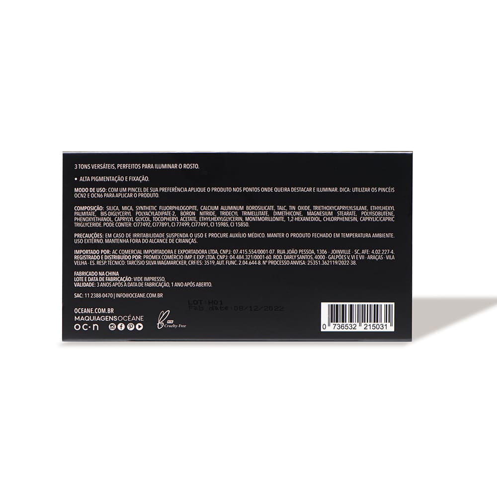 Com fórmula de longa duração e alta fixação, os iluminadores da Highlight Palette Océane permanecem na pele por mais tempo. Isso sem falar na aplicação, que é super prática e rápida!
