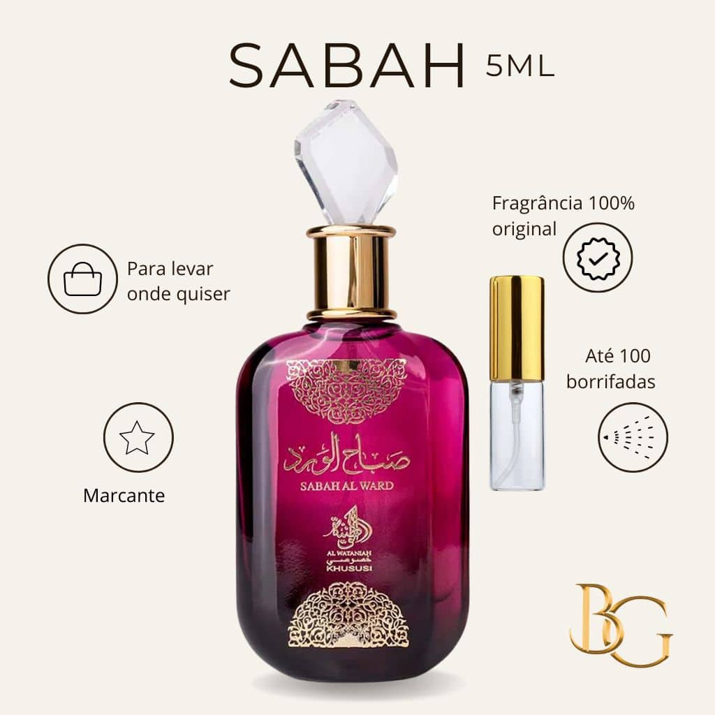 Descubra a fragrância feminina Sabah Al Ward, um perfume árabe sofisticado com características olfativas oriental floral. Esta versão possui 5 ml, ideal para uso pessoal, testar a fragrância ou levar em viagens.