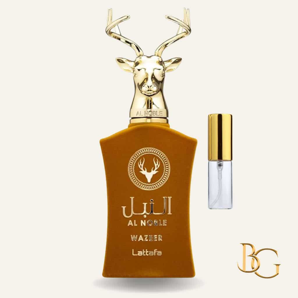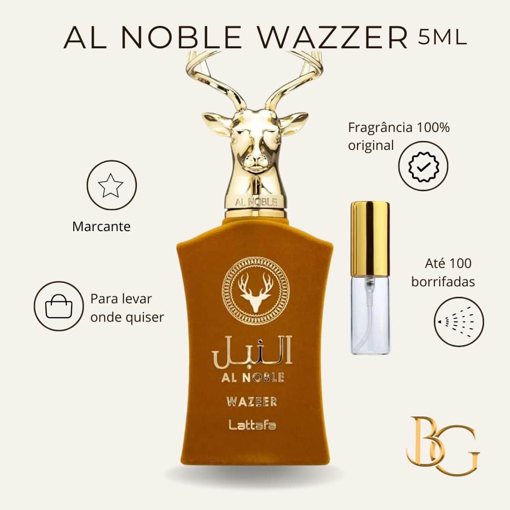 O Perfume Lattafa Al Noble Wazeer 5ml – Niche Dubai Unissex EDP é uma fragrância sofisticada e envolvente, desenhada para quem busca um perfume com personalidade marcante, ótima fixação e projeção envolvente mesmo em um decant compacto.