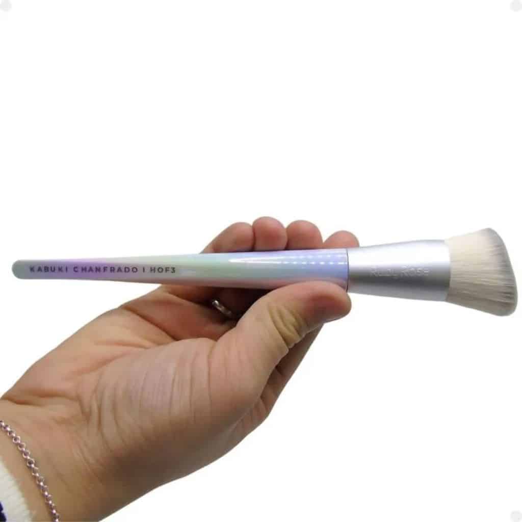 O design chanfrado das cerdas permite uma aplicação precisa em áreas específicas do rosto, como as maçãs do rosto, a linha da mandíbula e ao redor do nariz. A inclinação das cerdas facilita a criação de contornos e a aplicação de blush ou bronzer, permitindo maior controle sobre a intensidade e o local da aplicação.