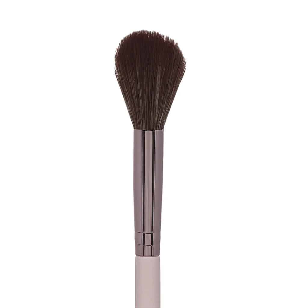 Com cerdas macias e delicadas, nosso pincel desliza suavemente sobre a pele, permitindo uma aplicação suave e uniforme do iluminador. Sua forma angulada e precisa garante uma distribuição precisa do produto, concentrando o brilho nas áreas desejadas, como as maçãs do rosto, o arco das sobrancelhas e o nariz.