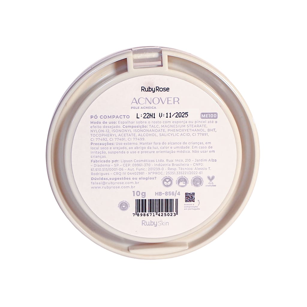 O Pó compacto Antiacne Acnover com acabamento matte. Previne cravos e espinhas enquanto uniformiza e disfarça marcas na pele. É ideal para selar a maquiagem, absorver a oleosidade excessiva do rosto e cobrir as imperfeições.